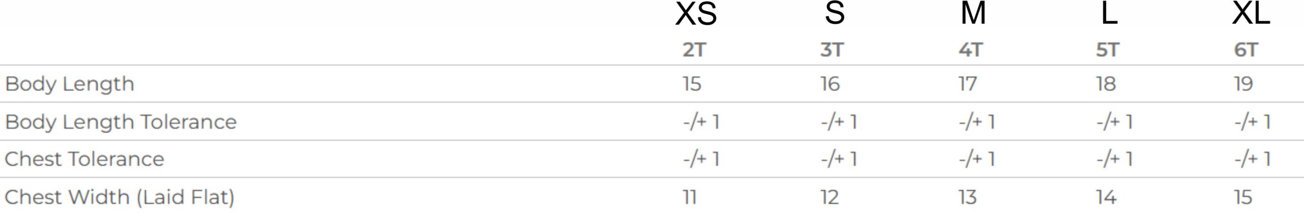Sizing: XS=2T, S=3T, M=4T, L=5T, XL=6T